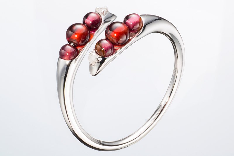 A ring from our Seed Collection. A great unique design in this 14K gold ring. “Kebab Set” with natural gemstone and finally topped with the sparkle of natural diamond… this is a stunning ring great for all occasions! The contrast of yellow gold and round Garnet bead works perfectly on this gemstone jewelry. Don’t miss out!